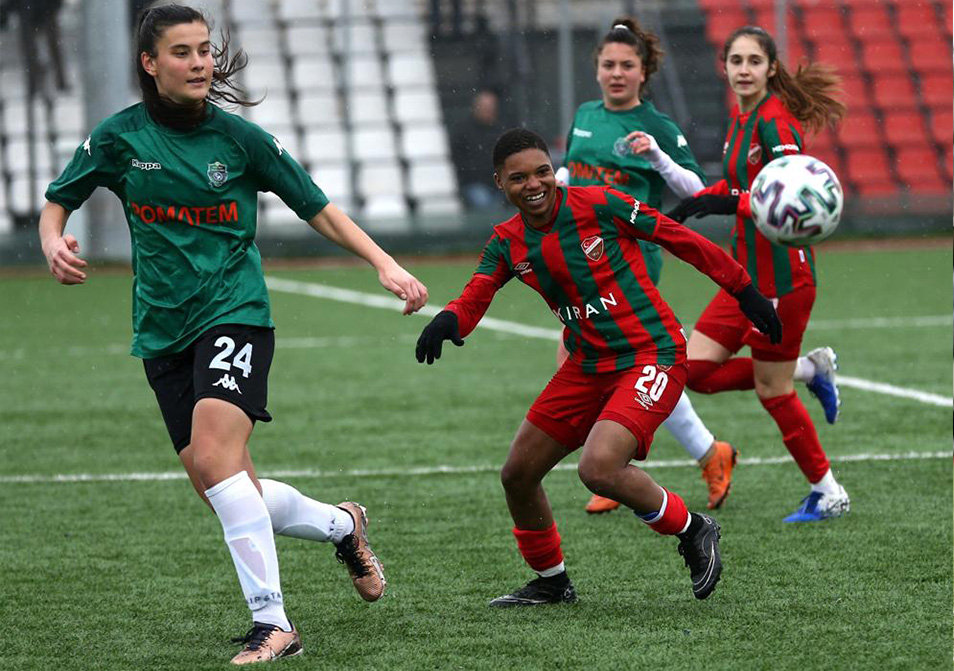 Buse Dağdelen: 2-3 sene boyunca erkek takımında antrenmanlara çıktık. Başlarda erkeklerin arasında tek kız olarak oynamak zordu. Ama zamanla bize alıştılar. Babam başta olmak üzere ailemiz her zaman bizim yanımızda oldu. Bu süreçte oradaki antrenörümüz Remzi Kulaber de her zaman bize destek oldu. Sonrasında bizi Beden Eğitimi öğretmeni olduğu okula davet etti ve okulda bir kız futbol takımı kurdu. Okul takımıyla birçok maça çıktık. Kocaeli’de bir kadın futbol takımı olduğundan haberimiz yoktu. Kulüp yöneticileri bizi Derince Belediye Spor Kadın Futbol takımına yönlendirdiler. İlk lisansımız Derince Belediye Spor ‘da çıktı.2 sene sonra Derince Belediye Spor kapandı. Oradaki hocamız Hasan Alemdar takımı dağıtmadı. Belli bir süre takım kurulana kadar kulüpsüz olarak antrenmanlarımıza devam ettik. Sonrasında Harb İş Spor ve ardından Kocaeli Bayan Futbol Kulübü olarak 2.lig, 3.lig ve Süper Ligde maçlara çıktık. U-15 milli takım kampına davet edildik.2018-2019 yıldız kızlarda Türkiye Şampiyonu olduk. Bu süreçte hocamız Hasan Alemdar her zaman yanımızda oldu. Şu an Kocaeli Bayan Futbol Kulübünde 1.ligde mücadele ediyoruz.